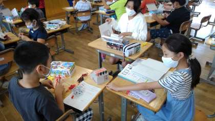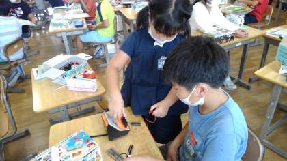 乾電池一本と二本の直列つなぎとを電流計を使って電流の大きさを比べました。