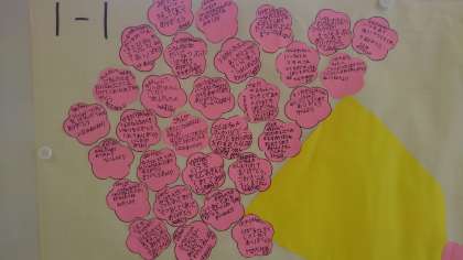 児童会の取組みで、ぽかぽか花束に取り組んでいます。挨拶やぽかぽかの言葉を使って優しさ一杯の学校を目指しています。
