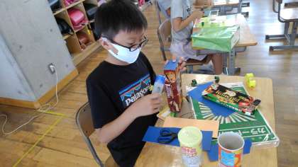 折り紙やモール等、素材に合わせた飾りを工夫しています。