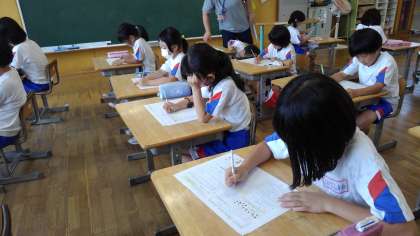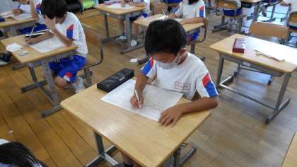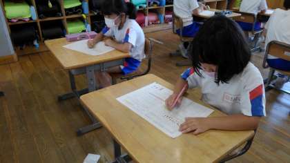 まとめのテストをしています。一学期学習したことを一生懸命思い出して、空欄がないように頑張っています。