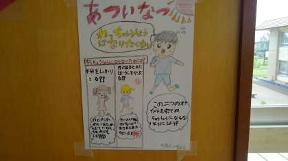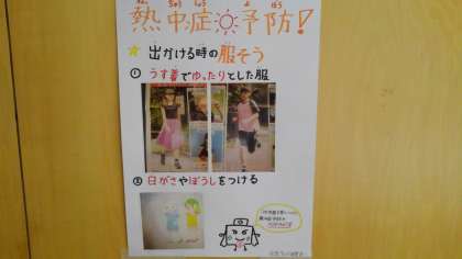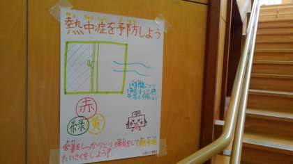 元気アップ委員会がポスターを作成して、熱中症予防を呼び掛けています。