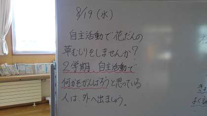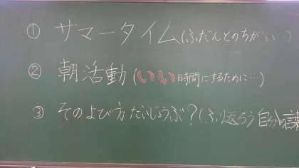 各学年で朝の活動を呼びかけています。
