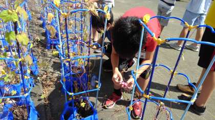 ヘチマだけでなく、アサガオの花粉も1年生の鉢からもらいました。
