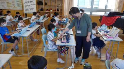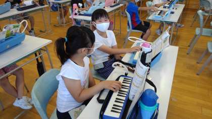 鍵盤ハーモニカの指使いを何度も確認しました。