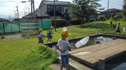 ビオトープで虫を捕まえました。