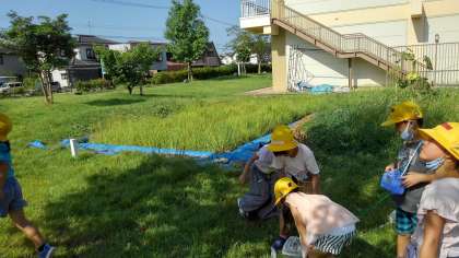 チョウやトンボを見つけると、みんなで必死に追いかけています。