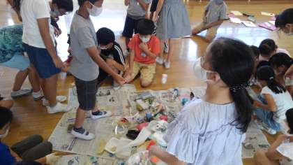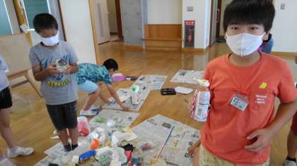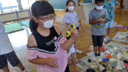 海岸に打ち上げられたゴミを調査しました。外国の缶やプラスチックゴミの多さに驚いていました。