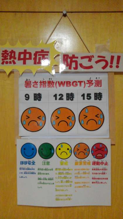 今日もとても暑い日になります。熱中症予防に十分気を付けていきます。今日は外での活動を控えます。