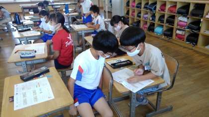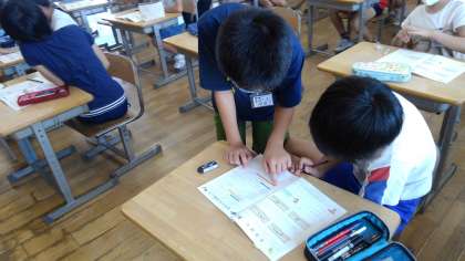 友達と教え合いながら、いろいろな問題に挑戦しています。
