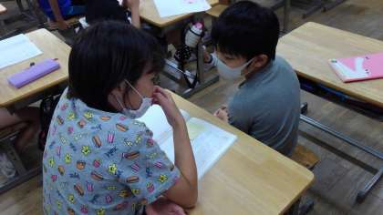「山小屋で3日間過ごすなら」の学習では、どんなものを持っていくかグループで話し合ったことを発表しました。