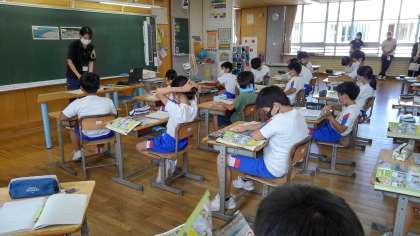 高学年、学習公開2時間目の様子です。中、高学年は交換授業を公開しています。