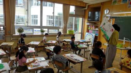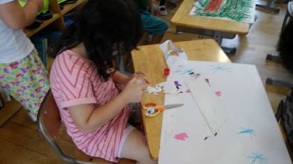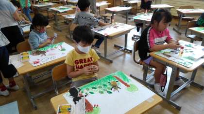 クレヨンの特徴を生かして水彩で色を塗ります。