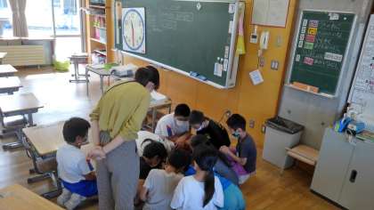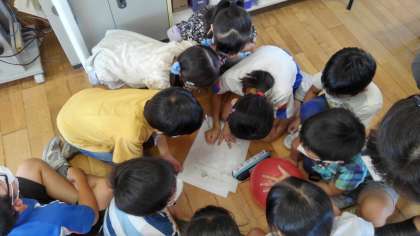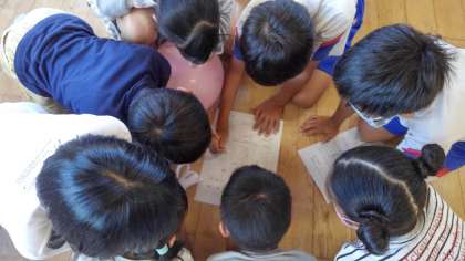今日の大広田っ子タイムは、縦割り集会を行いました。いろいろな教室に分かれて3つのゲームを行いました。先ずは、班で協力しての「もじ集め」です。