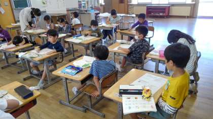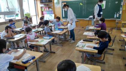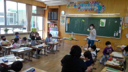 「やくそく」の学習では、一場面のあおむしの気持ちを考えました。