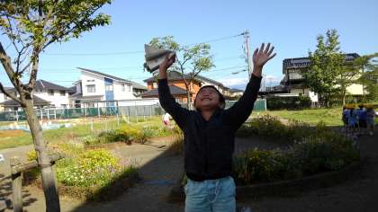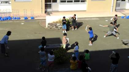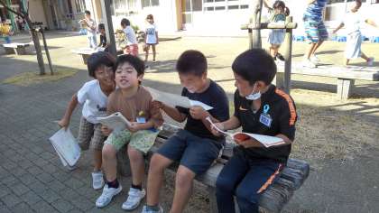 外で詩の音読をしました。おもいっきり大きな声で音読したり、身振り手振りを付けたりしました。