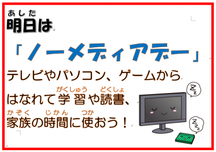 明日はノーメディア・デーです。 家族で話し、ノーメディアに取り組みましょう!