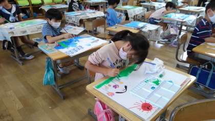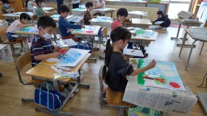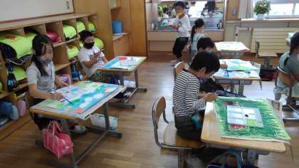 クレヨンと水彩の特徴を生かして、上手に色を塗っています。
