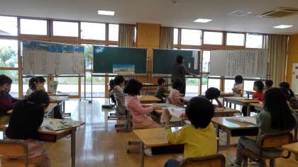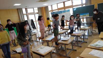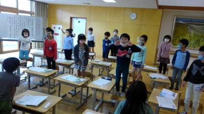 「くじらぐも」の学習では、くじらぐもに誘われたときの子供たちの気持ちを考えました。