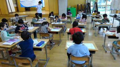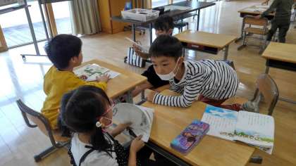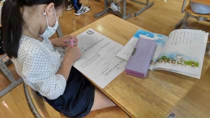 吹き出しに書いたり、ペアの友達と話し合ったりしました。