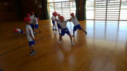 ドッジボールの学習では、上手に相手を狙って投げられるよう頑張っています。