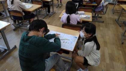 テスト直しです。わからなかったところを友達や先生に教えてもらっています。