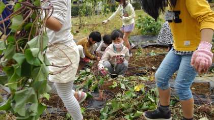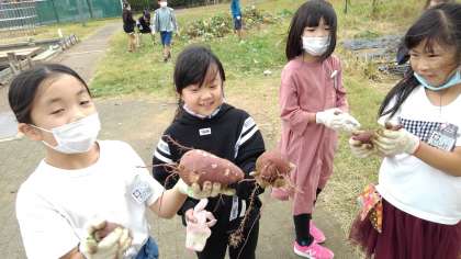 いも掘りをしました。大きなサツマイモに大喜びです。