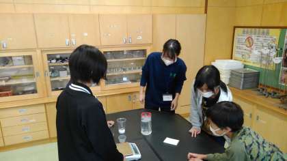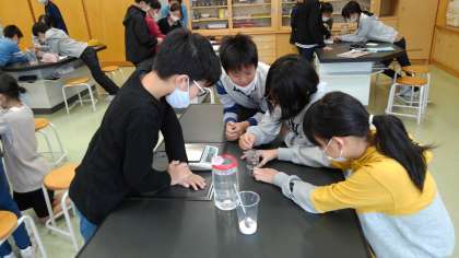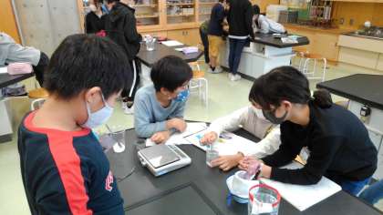 ものの溶けかたの学習では、ものによって溶ける量が違うのか、温度によって溶け方が違うのか実験しました。