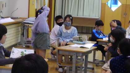 「くじらぐも」の学習では、くじらぐもに出会った時の子供たちの様子を想像しました。