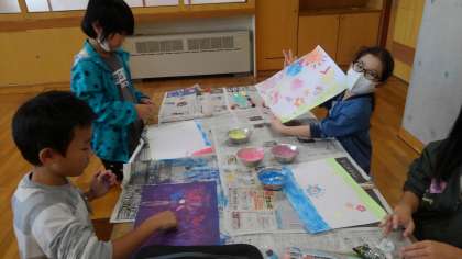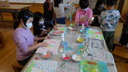 花火や宇宙、花等、思い思いに描きたい物を表現しました。