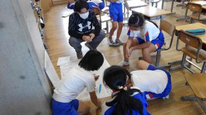 発表の仕方や提示物をグループで考えたり、作ったりしています。