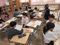 漢字の仲間分けをしました。色・教科・天気など、いろいろな仲間に分けることができました。