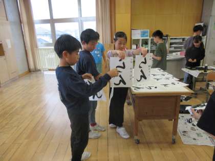 1組と2組、同じ時間に書写をしました。4年生フロアは静かな雰囲気で集中した空気が感じられました。自分の書いた字を比べ、どれを提出するかを考えるのも大切な学習です。