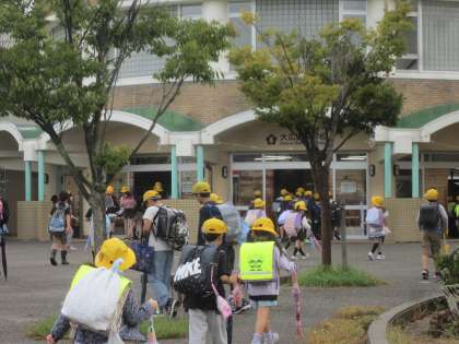 10月7日。今朝も地域の方に見守られ、子供たちが元気に登校しました。