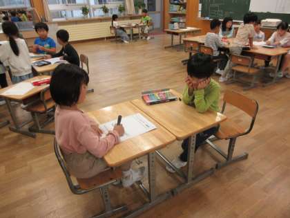 2組は係活動をしています。係ごとに活動の練習をしています。