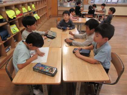 1組も係活動をしています。自分たちで目当てや活動内容、活動の準備を進めています。