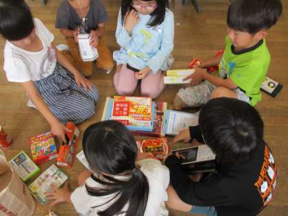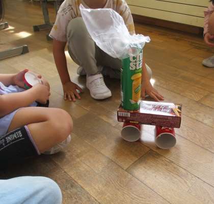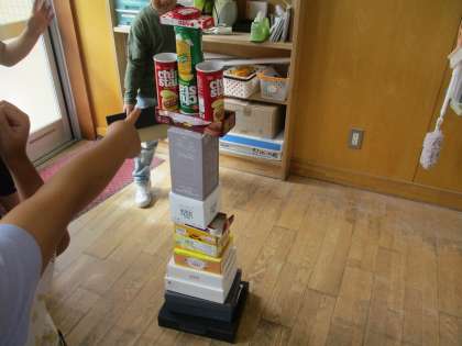 家から持ってきた箱を組み合わせて、グループのみんなといろいろなものを作りました.