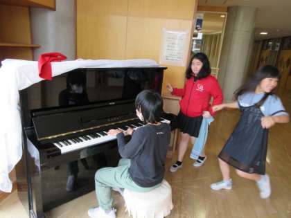 昼休憩には、ピアノを演奏して楽しむ子供もいます。