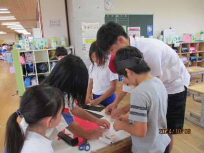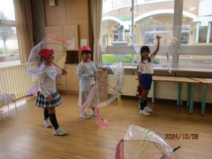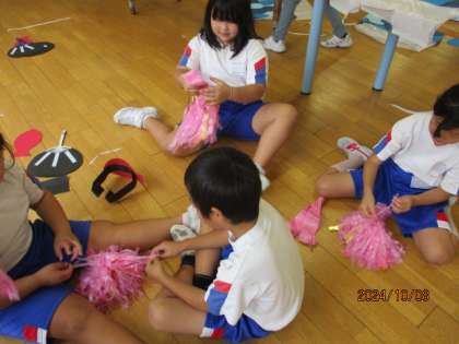 発表会に使うお面、ポンポンなどを作りました。「スイミー」に出てくる仲間たちをみんなで楽しく作ることができました。