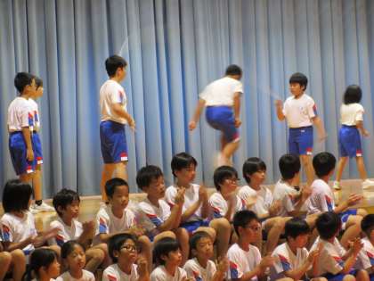短縄や長縄、ダブルダッチなど、色々な技を披露しました。一人ひとり伸び伸びと発表していました。