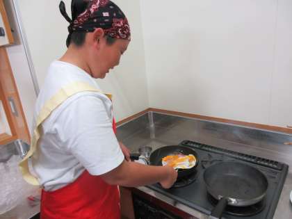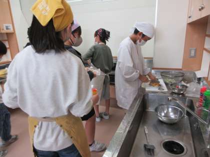調理実習で主菜を作りました。包丁の扱い方やガスのつけ方など、安全に注意して作ることができました。