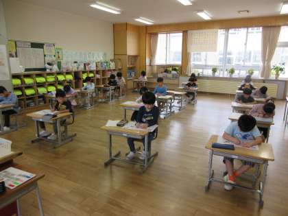 国語のテストです。これまで学習したことを思い出しながら真剣に取り組みました。