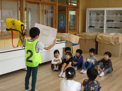 浜黒崎小の人に校内を案内してもらって、校内オリエンテーリングをしました。クイズに答えながら、浜黒崎小学校のことを教えてもらいました。