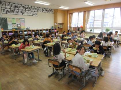 今日もおいしく給食をいただいています。好き嫌いせず、たくさん食べましょう!