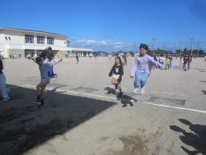 秋晴れのもと、のびのびと体を動かしました。