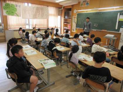 先生がお話を読み、登場人物や場面について確認してから話し合いを始めました。