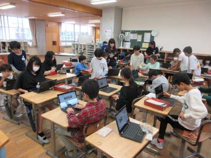 身の回りの整理整頓について考えました。まずは自分のお道具箱です。片づける前と後の写真を撮って見比べ、整理整頓の大切さを考えました。