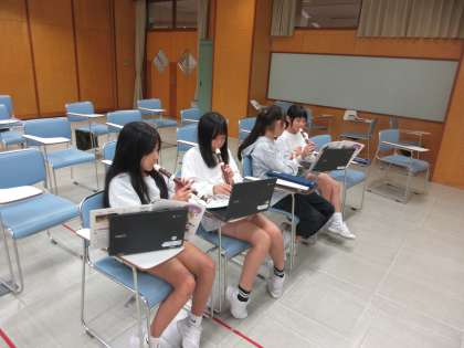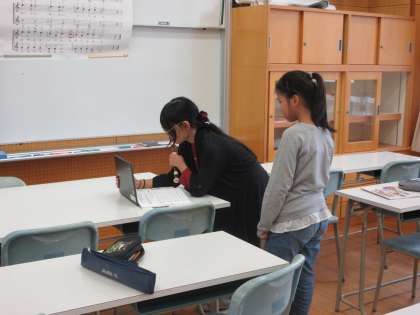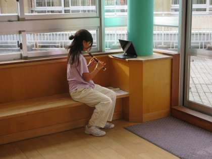リコーダー練習です。自分で集中できる練習場所を見つけ、練習して動画撮影をしています。とても上達しています。