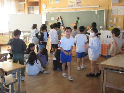 3年生はハロウィン集会をしました。飾りつけもハロウィンらしくばっちりです。手作り感がとてもよいです。