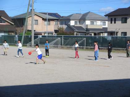 外では2年生と3年生がサッカーやドッジボールを楽しんでいました。
