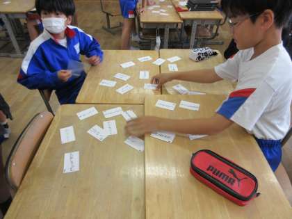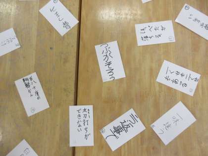 グループごとに完成した慣用句かるたに挑戦です。改善点なども話し合っていました。